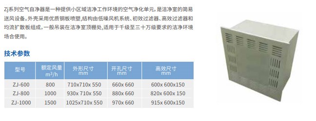 空氣自凈器是一種提供局部潔凈工作環境的空氣凈化單元,由初效、風機、高效過濾器及靜壓箱組成。結構簡單,使用方便,是簡易小面積需空氣凈化的最佳理想凈化設備。分為固定式ZJ和移動式YZJ型兩種,出口潔凈度可達百級。